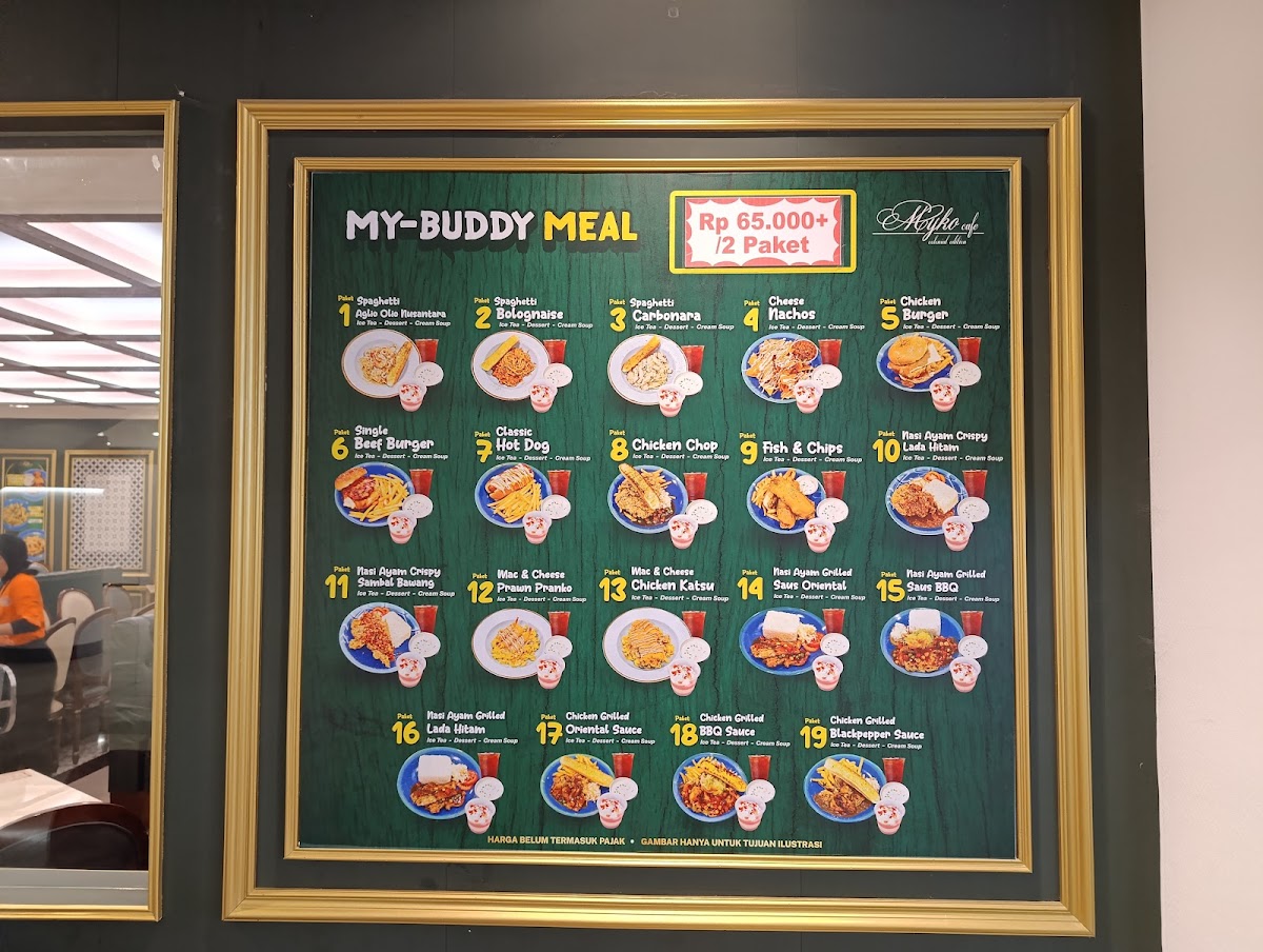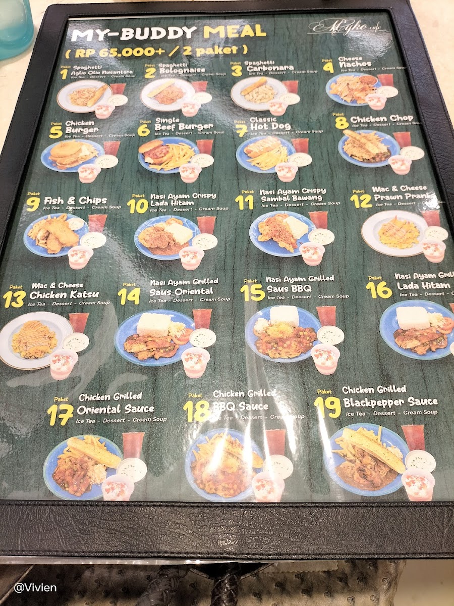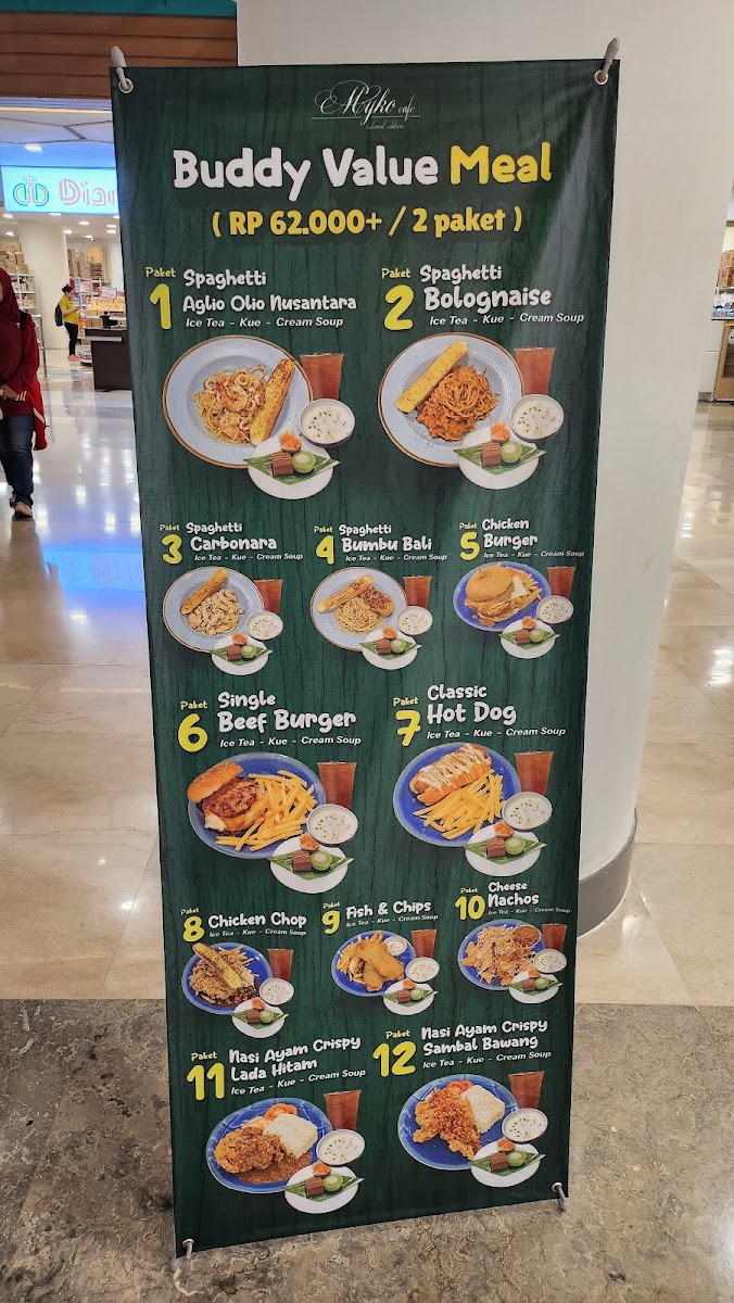 The menu structure allows for convenient ordering of individual dishes as well as combination packages that provide a full meal experience. This makes it suitable for visitors seeking quick meals, light bites, or complete dining options in a casual cafe setting.